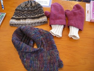 ....and her Autumn Vines Beret made with Louisa Harding Kashmir DK, and her stranded cowls made with Cascade 220 and Noro Kureyon.
